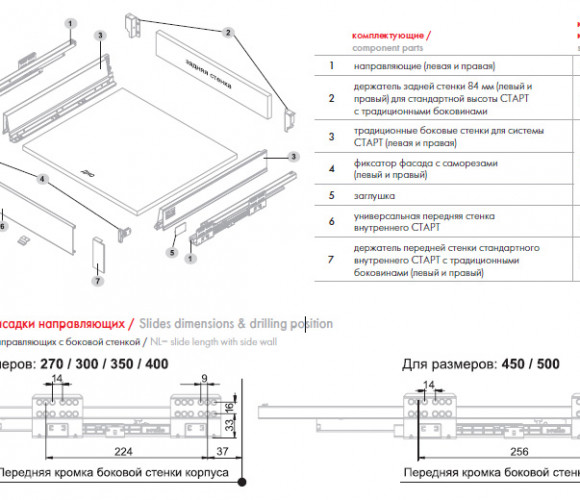 Держатели передней стенки ящика представлены в двух цветовых решениях: белый (W) и серый (GR), и идеально сочетаются по цвету с остальными комплектующими СТАРТ для стандартных выдвижных мебельных ящиков с традиционными боковинами.