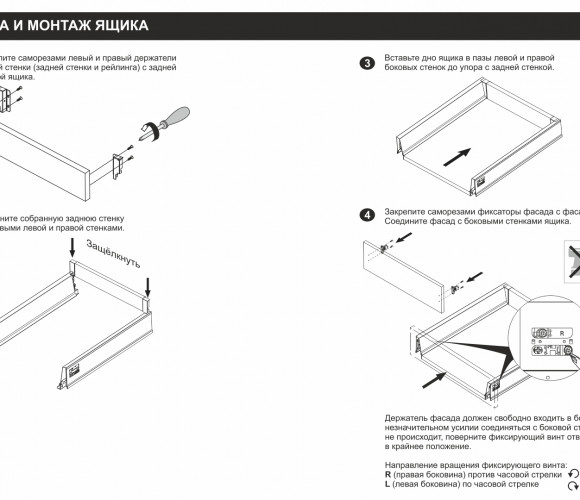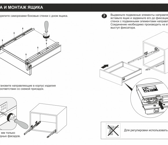 Для сборки выдвижного мебельного ящика на базе СТАРТ PUSH SB30 необходимо самостоятельно изготовить фасад, заднюю стенку и дно ящика.