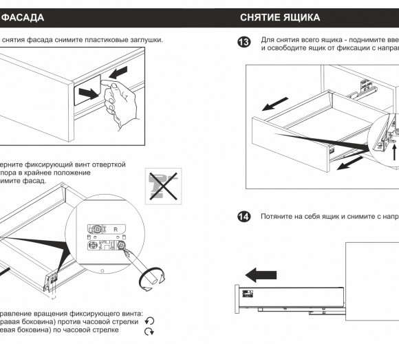 Модель эксклюзивно имеет специальный ограничитель механизма PUSH, что позволит избежать поломки системы выдвижения в процессе установки ящика на направляющие с прилагаемым усилием. Ограничитель также выполняет функцию упора для вкладных ящиков.