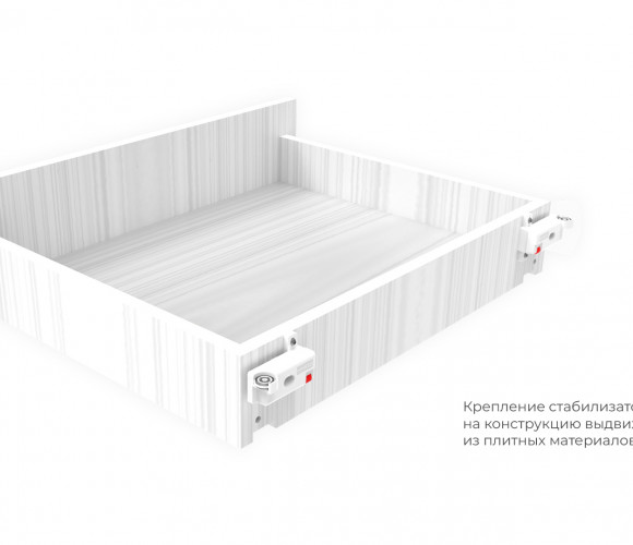 Стабилизатор прост в монтаже: закрепляется с обратной стороны мебельного ящика, что делает его полностью скрытым от глаз.