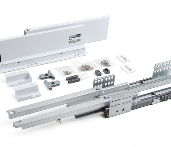 Комплект SB28 включает в себя: направляющие (левая и правая), детали для установки трубки синхронизации с крепежом, держатели задней стенки, традиционные боковые стенки, фиксаторы фасада, заглушки, крепёж.