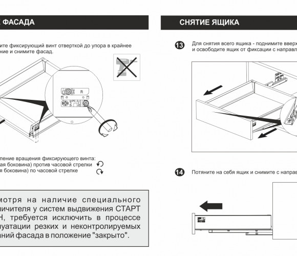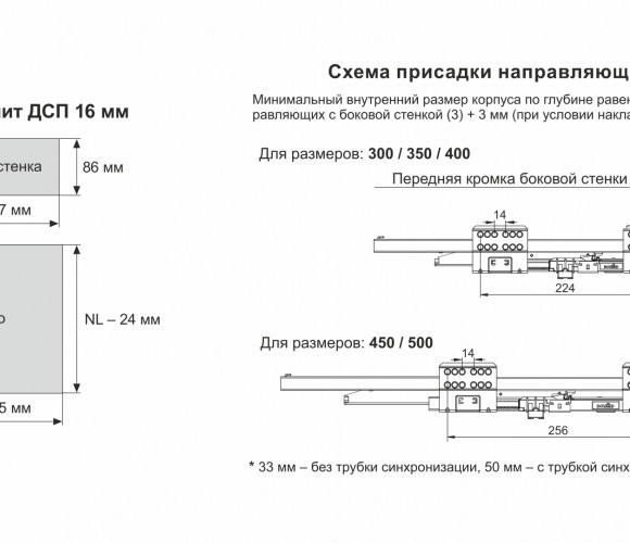 Для сборки выдвижного мебельного ящика на базе СТАРТ PUSH SB28 необходимо самостоятельно изготовить фасад, заднюю стенку и дно ящика.