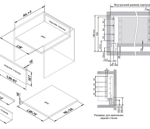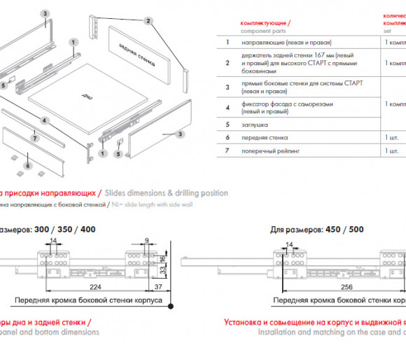 Держатели передней стенки ящика представлены в трёх цветовых решениях: белый, (W), серый (GR) и графитовый (GRPH) и идеально сочетаются по цвету с остальными комплектующими СТАРТ для высоких выдвижных мебельных ящиков с прямыми боковинами.