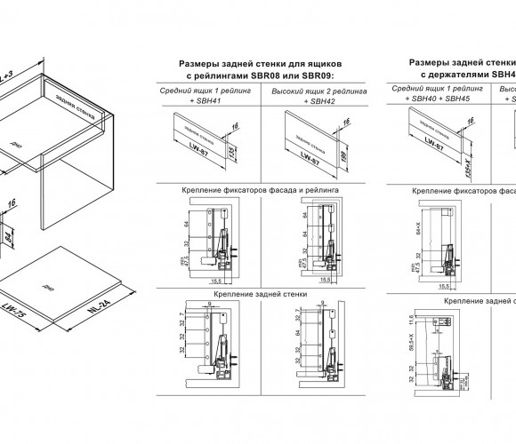 SBH40 – держатель рейлинга к задней стенке выдвижного мебельного ящика. Продукт предназначен для надёжной фиксации и установки прямоугольного (SBR09) рейлинга в графитовом цвете для  создания ящиков любой высоты с прямыми боковинами.