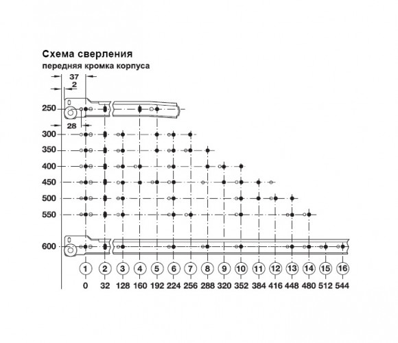 Регулировка высоты: через продольные отверстия.