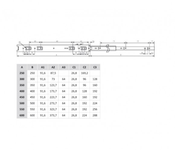 Длина - 450 мм. Ширина - 35 мм. Нагрузка на пару - 20 кг.