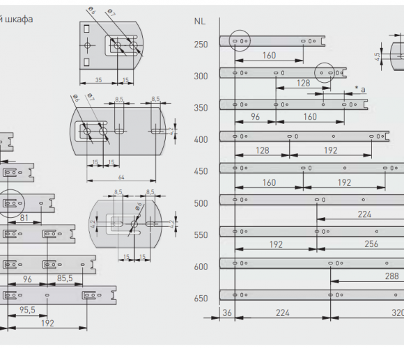 - Отличительная особенность шариковых направляющих данного типа (H45 PRO); повышенная нагрузка - 50 кг.