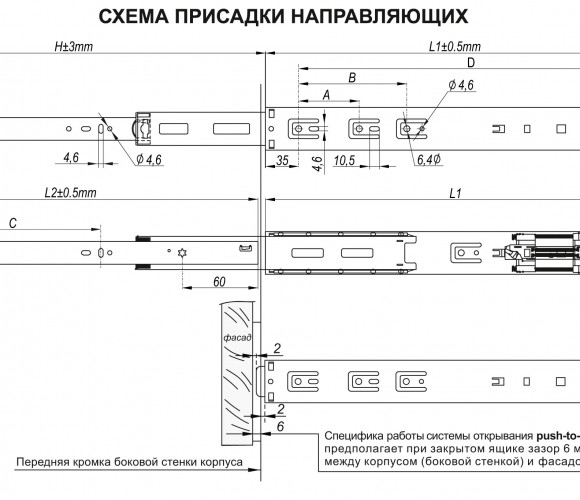 Функция выдвижения Открывание от нажатия и демпфирование