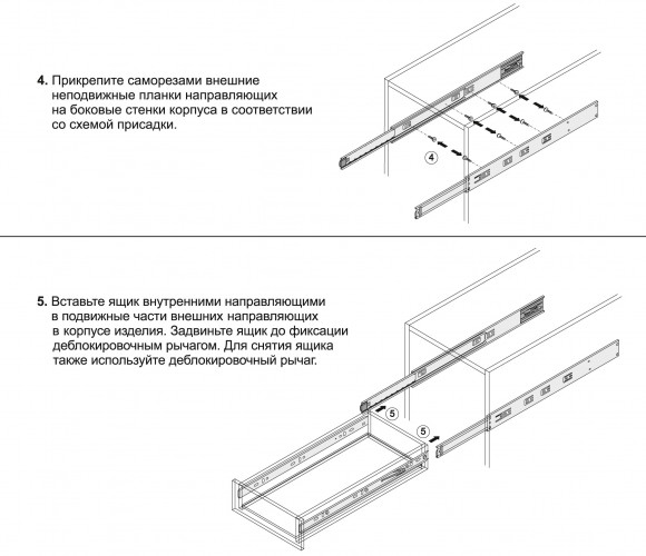 Направляющие представлены в размерной линейке от 300 до 500 мм. DB4518 обеспечивают полное выдвижение с 400 мм.