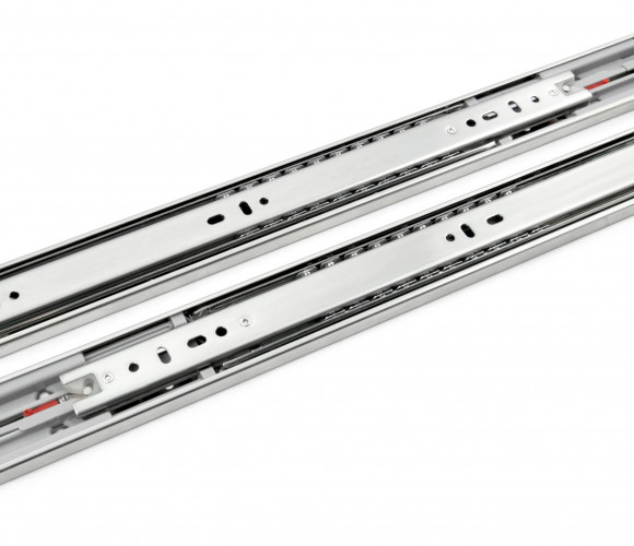 Шариковые направляющие DB4515 – решение для стильной и функциональной мебели, которая не предполагает установку ручек. Направляющие плавно выдвигают ящик от легкого нажатия на любую точку фасада.