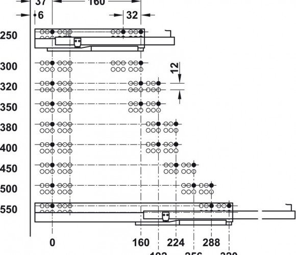 Направляющие скрытого монтажа, частич. выдв. 500мм с доводчиком 433.06.488/433.07.250