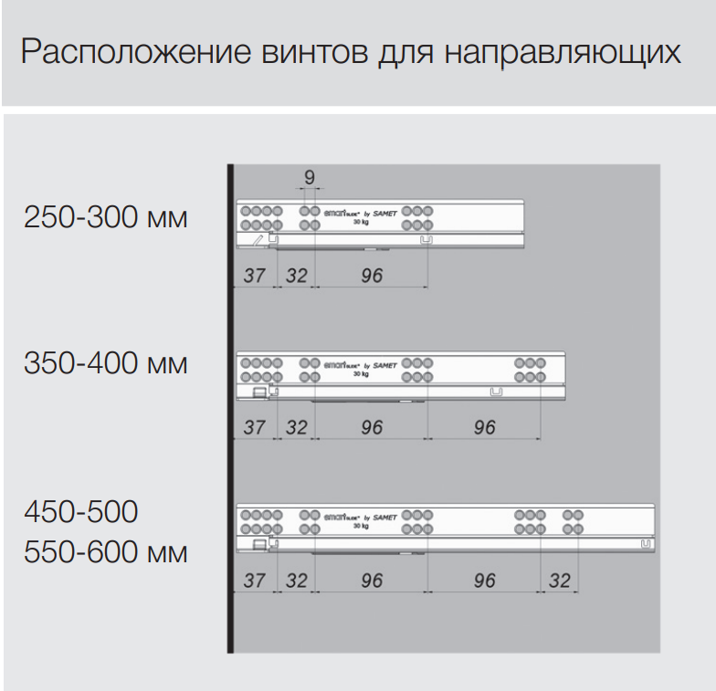САМЕТ Напр. SMART SLIDE полного выдв. с довод., 300 мм, 127.240.232