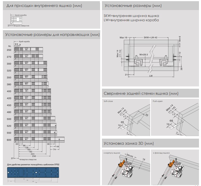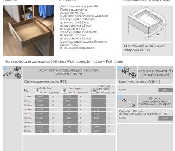 Направляющие скрыт. монт. DTC TS10/350 40кг 3D, полного выдв. с дов. (TS10350H) 0016248
