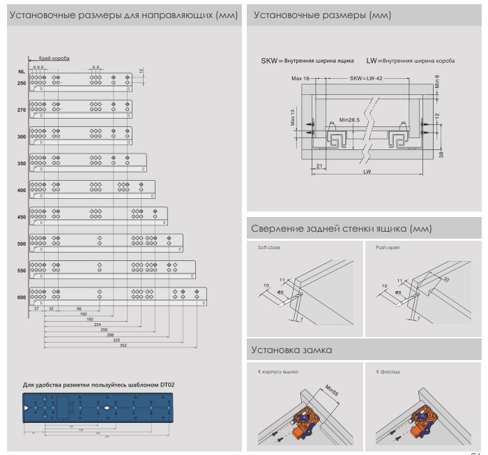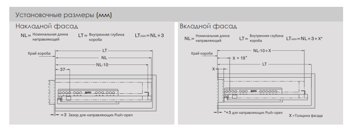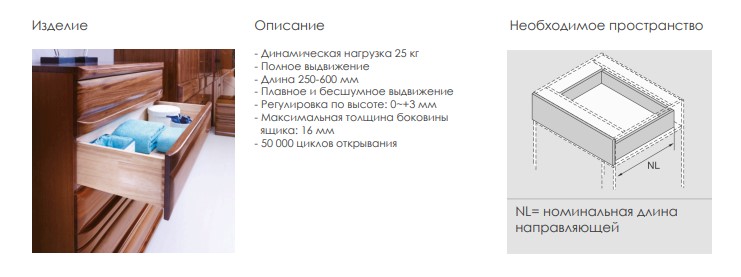 Направляющие скрыт. монт. DTC S10D/500 25кг 2D, полного выдв. с дов. (S10D500HX) 0016658
