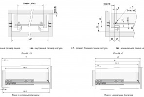 Направляющие скрыт. монт. В-Slide DB8782Zn/270 1D, частичного выдв. с доводчиком