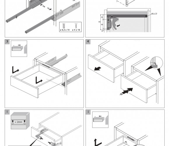 • - Гибкая система замены — вместо Quadro с частичным выдвижением устанавливаются направляющие полного выдвижения, размеры корпуса, ящика и передней панели при этом не меняются