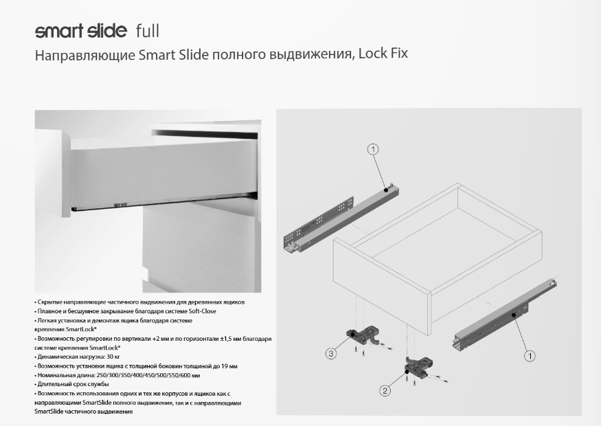 как с направляющими SmartSlide® полного выдвижения, так и с