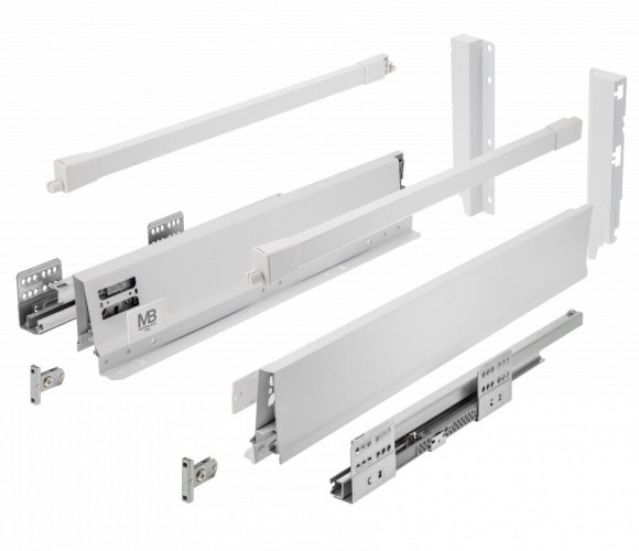 Модерн Бокс PRO L-400, высокий H-199 мм, белый - мебельная система выдвижения, представляющая собой набор из направляющих, боковых стенок и рейлингов, для сборки выкатного ящика. Модерн Бокс в первую очередь предназначен для кухонных гарнитуров, но также может быть использован в мебельных конструкциях другого назначения, где конструктивно предусмотрены выдвижные ящики.