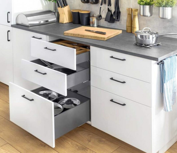 Полное выдвижение, обеспечивающее удобный доступ к содержимому ящика.