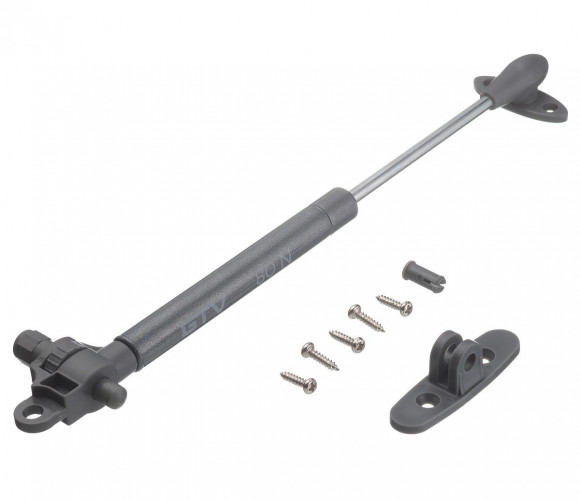 Подъёмник газовый с амортизатором 60N GTV, антрацит - мебельный подъемник, в конструкции которого предусмотрены доводчик и амортизатор. При правильной регулировке газлифта, в момент закрывании фасада исключается удар и сопутствующий ему шум.