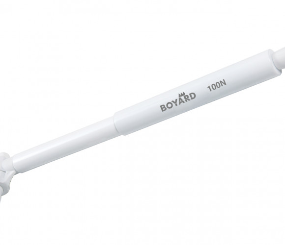 Лаконичный моно-дизайн, образуемый защитно-декоративным стальным чехлом, скрывает спицу газлифта. Белый цвет подходит большинству кухонь и хорошо сочетается с боковинами ящиков аналогичного цвета.