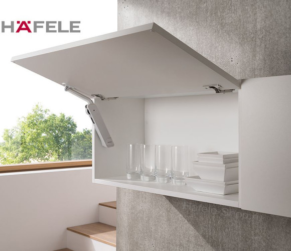 Элегантный подъёмник для шкафов с фасадом из древесины, стекла или алюминиевых рам.
