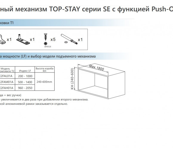 Диапазон индекса мощности LF для механизмов TOP-STAYS SE с функцией Push-Open: