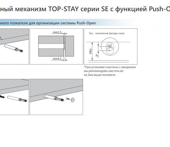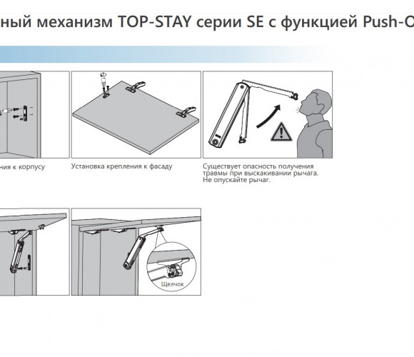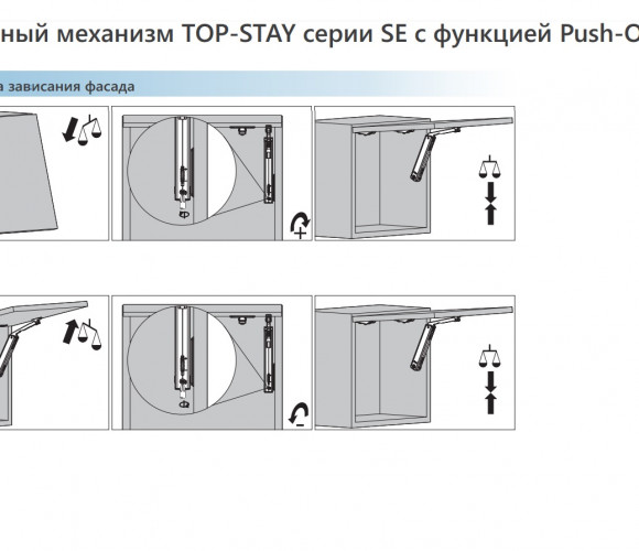 - Открывание от нажатия и функция фиксации фасада в любом положении
