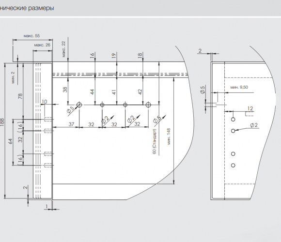 Для фасадов весом от 1,7 до 9,7 кг, шириной до 1200 мм и высотой от 200 до 600 мм