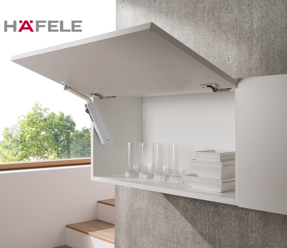 легантный подъёмник для шкафов с фасадом из древесины, стекла или алюминиевых рам.