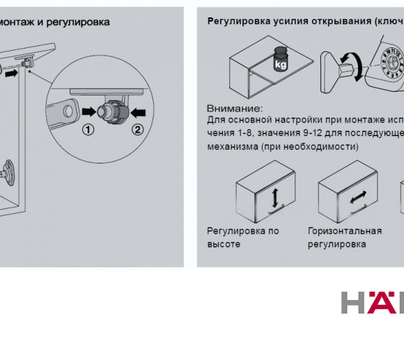 Легкий монтаж, регулировка в трех плоскостях, настройка под вес фасада.