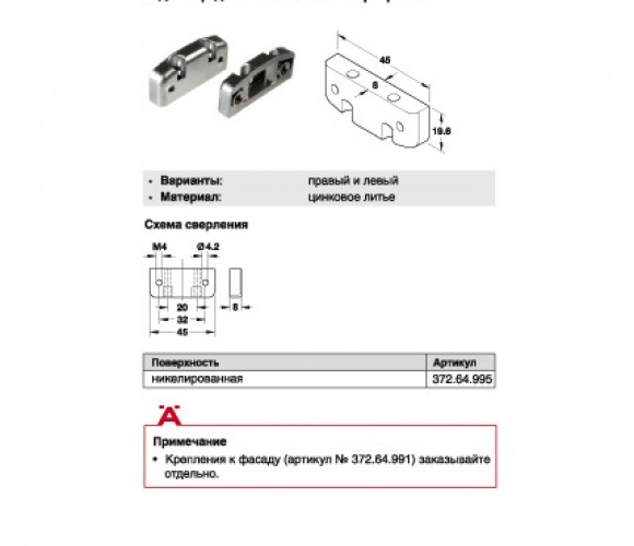 Адаптер для алюминиевых профилей/Huwilift Senso (372.64.995)