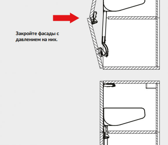 - Регулировка нижнего фасада: по высоте (+/-3 мм) – по ширине (+/-2 мм) – по глубине (+/-2 мм)