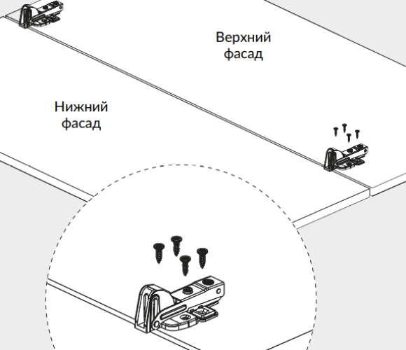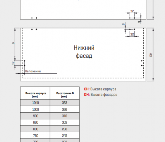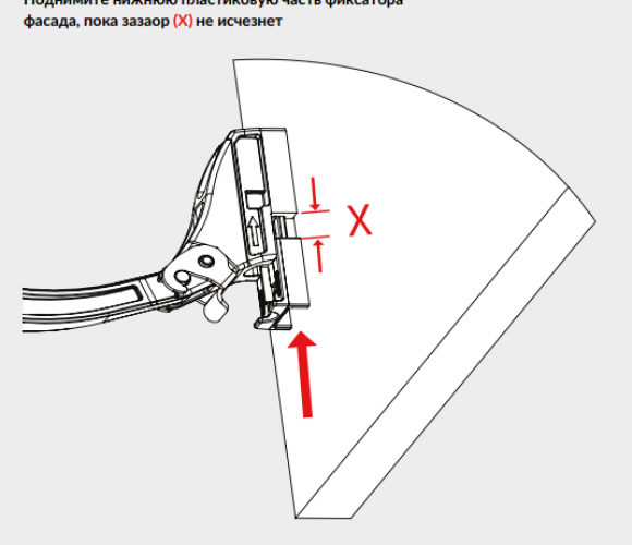 - Регулировка верхнего фасада: по высоте (+/-2 мм) – по ширине (+/-2 мм) – по глубине (+/-2 мм)