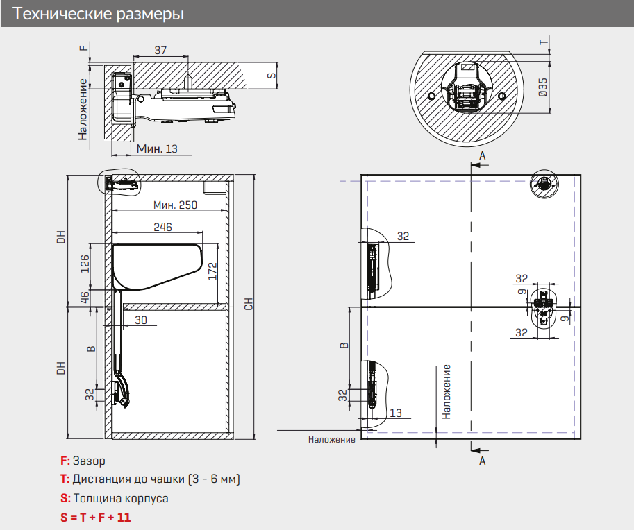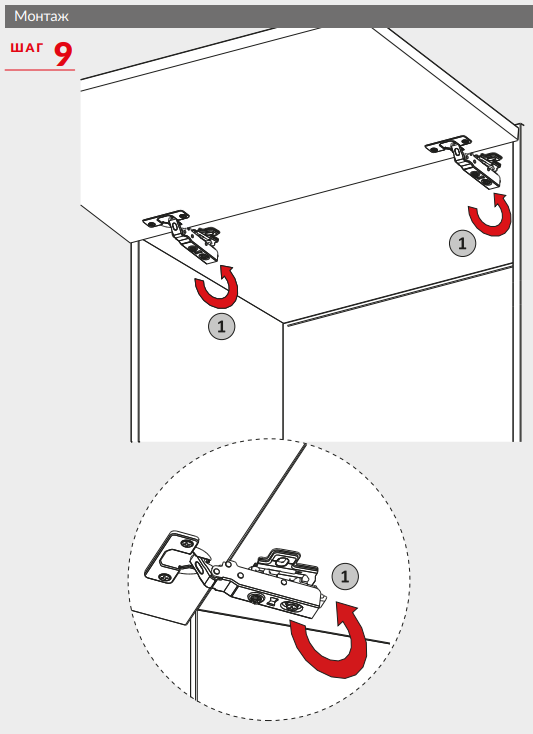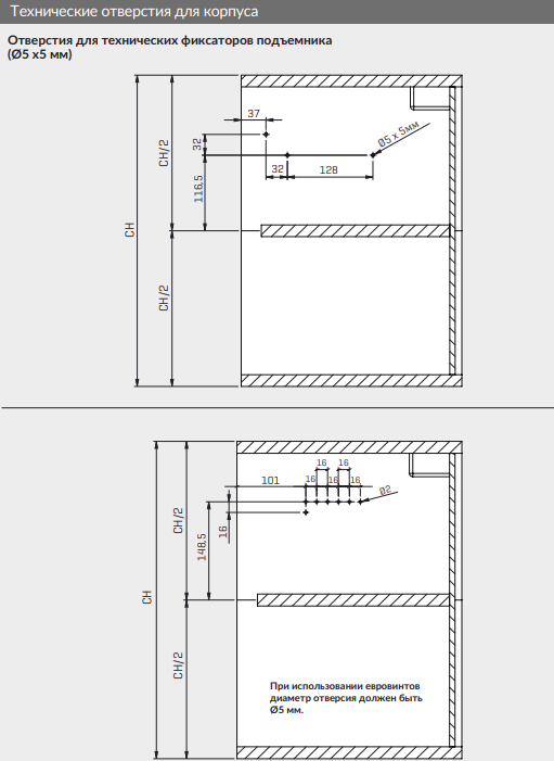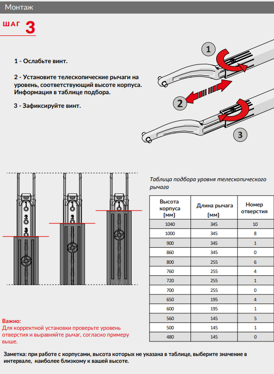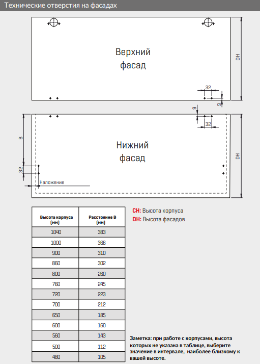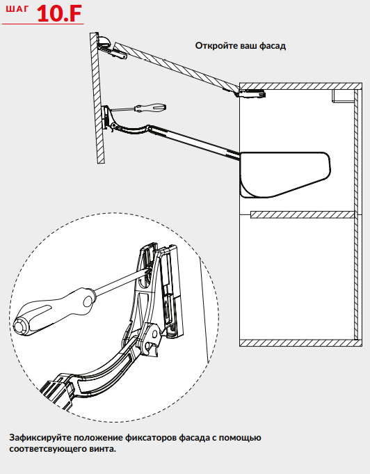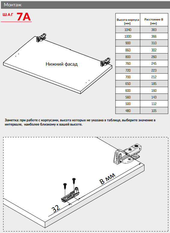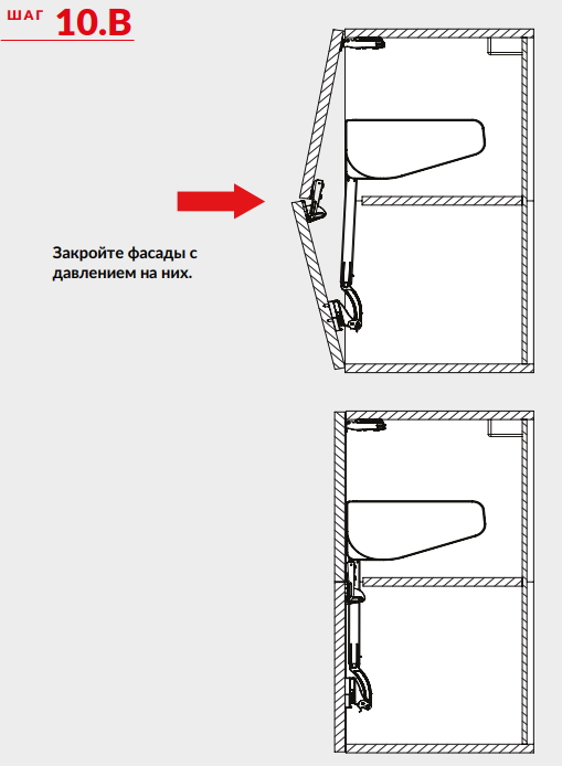 - Регулировка нижнего фасада: по высоте (+/-3 мм) – по ширине (+/-2 мм) – по глубине (+/-2 мм)
