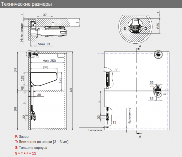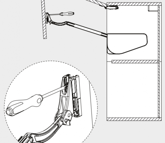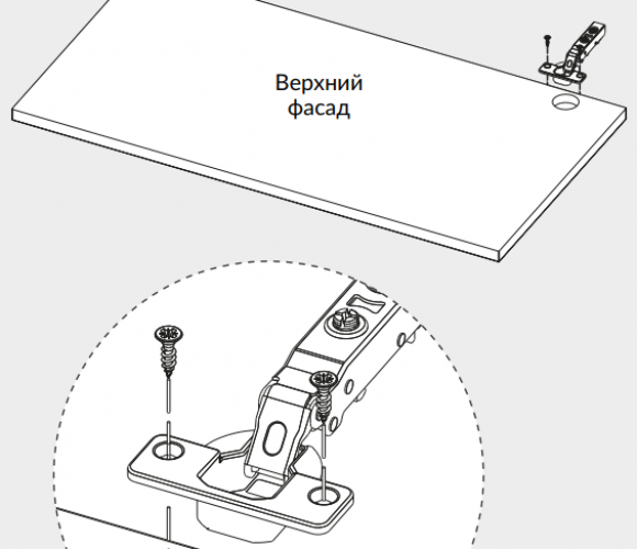- Регулировка верхнего фасада: по высоте (+/-2 мм) – по ширине (+/-2 мм) – по глубине (+/-2 мм)