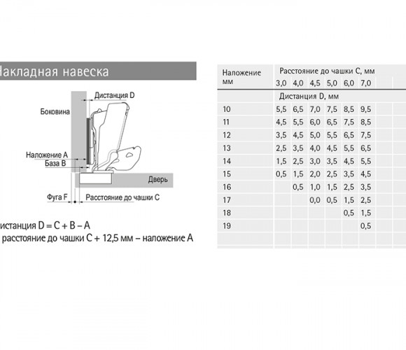 - Угол открывания может быть уменьшен при помощи дополнительных принадлежностей