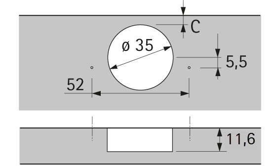 - Скрытая петля с техникой защелкивания без встроенного демпфера с функцией самозакрывания