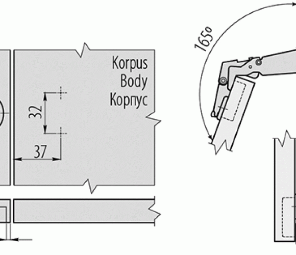 | Угол открывания | 165 | |