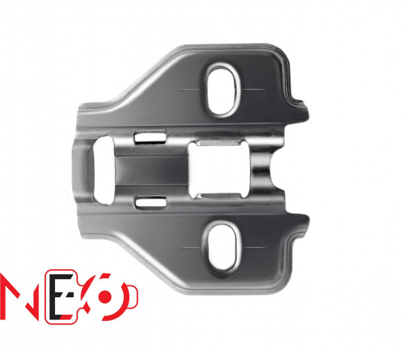 NEO H3010 – это базовая трапециевидная планка без эксцентрика, созданная специально для петель линейки NEO. Массивная форма планки обеспечивает более жесткое крепление петли к боковой стенке. Для крепежа можно использовать как евровинты, так и саморезы, которые приобретаются отдельно. Положение фасада по горизонтали/вертикали можно отрегулировать изменением положения планки: если она установлена с помощью евровинтов, регулировка возможна в диапазоне 4 мм, а с помощью саморезов – в диапазоне 5 мм.