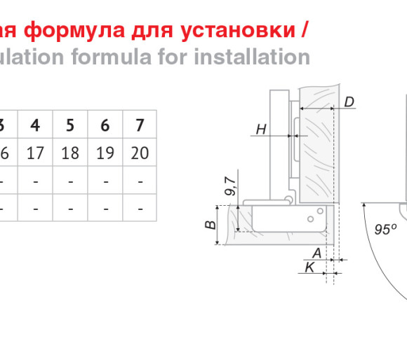 Угол открывания: 95°