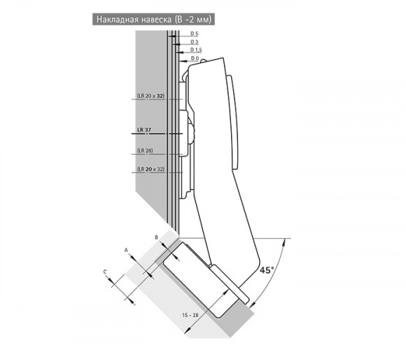 - Для угловых шкафов, угол корпуса 45°