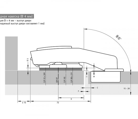 - Встроенная регулировка для наложения двери 1/–2 мм