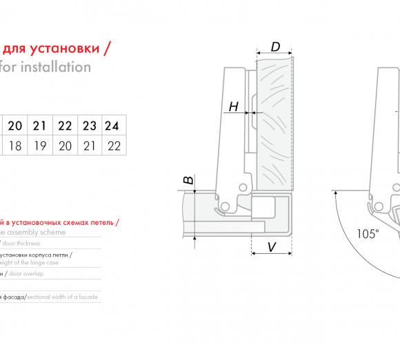 Угол открывания 105°