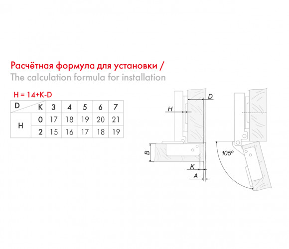 Петля предназначена для надежного крепления накладных, полунакладных и вкладных фасадов толщиной до 22 мм. H306 является двухходовой, с возможностью остановки фасада в полуоткрытом положении.