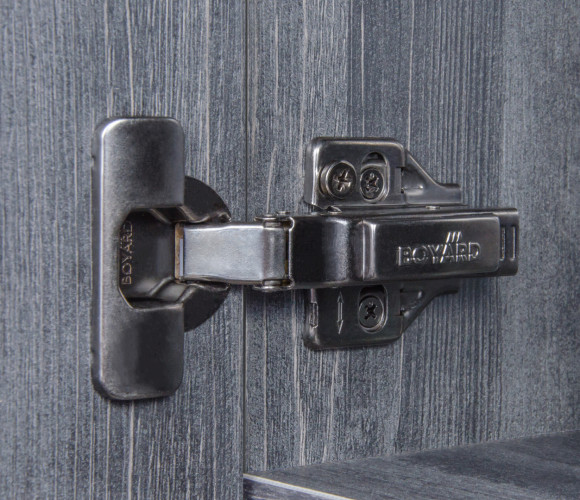 Модель имеет регулировку фасада в трёх плоскостях (по глубине, горизонтали и вертикали). Удобная регулировка по высоте и глубине в одно действие осуществляется при помощи эксцентрикового винта, встроенного в корпус петли. Регулировка фасада по горизонтали доступна при помощи винтов на планке.