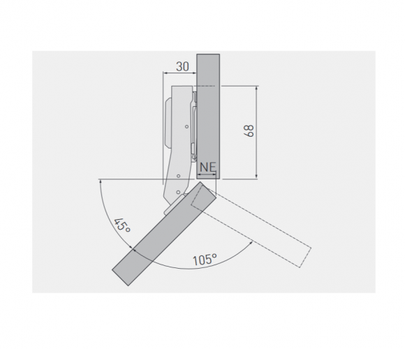 Петля GTV ZM-НСKT 45 градусов угловая самозакрывающаяся с планкой, регулировка в 3 плоскостях - механизм для открывания фасада под определенным углом, в соответствии с конфигурацией мебельной конструкции.