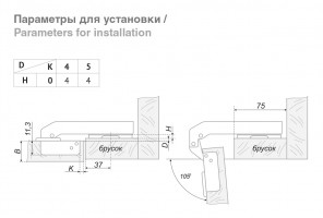 Петля BOYARD slide-on для угла устанвки -45 гр. D35mm.115гр. откр. H645A02/0814