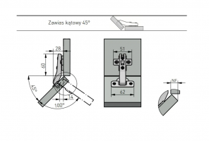 Петля GTV для складн. двер. на углов. шкафах, 135гр. откр. , H-2мм ZP-KT135H2BE