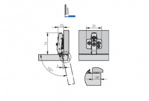 Петля BOYARD меб. с довод. быстр. монт. clip-on D35mm.105гр. откр. смежная H302B02/2410